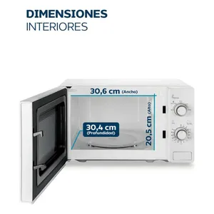 Ofrece un espacio adecuado para calentar y cocinar porciones individuales o familiares. Su tamaño compacto permite ubicarlo fácilmente en cualquier cocina sin ocupar demasiado espacio.