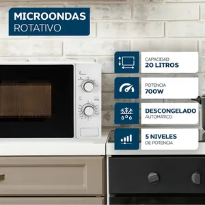 El horno microondas Philco MPHRW20UAP de 20 litros es un electrodoméstico práctico y eficiente, ideal para facilitar la preparación de comidas en el hogar. Su diseño moderno y compacto se adapta a cualquier cocina, ofreciendo funciones versátiles para calentar, descongelar y cocinar de manera rápida. Cuenta con un panel de control intuitivo que permite seleccionar la potencia y el tiempo de cocción con facilidad. Su capacidad de 20 litros es perfecta para platos de tamaño estándar, asegurando comodidad en su uso diario. Con tecnología avanzada y materiales resistentes, es una opción confiable para optimizar el tiempo en la cocina.