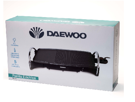 La parrilla eléctrica Daewoo EG8722 es ideal para disfrutar de una cocción práctica, limpia y sin humo. Gracias a su superficie antiadherente y control de temperatura regulable, podés preparar carnes, verduras o pescados de forma pareja y saludable. Su diseño compacto y moderno permite usarla tanto en interiores como exteriores, facilitando la limpieza y el manejo.