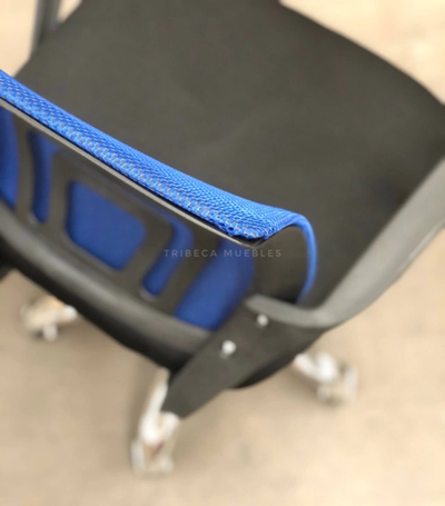 Equipada con respaldo de malla transpirable, asiento acolchado de alta densidad y regulación de altura mediante sistema neumático, brinda confort y frescura durante todo el día. Además, cuenta con base giratoria de 5 ruedas, que facilita la movilidad y estabilidad en cualquier superficie.