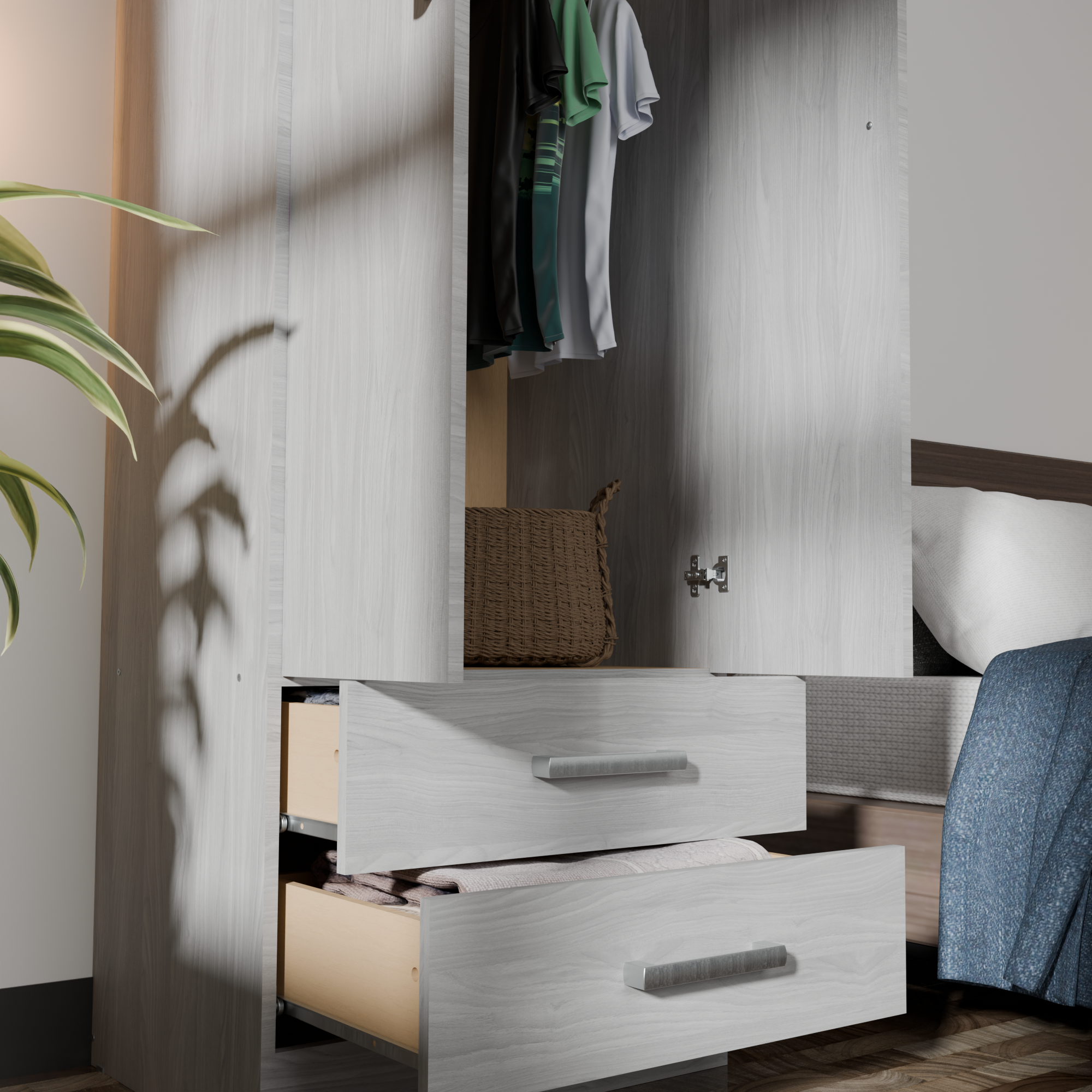 Los ensambles se realizan mediante un sistema de herrajes de unión que facilitan el armado, manteniendo siempre el mueble firme y ajustado. Se adjunta un manual con sencillas instrucciones para que cualquier persona arme el mueble en pocos minutos en el lugar donde va a ser instalado.