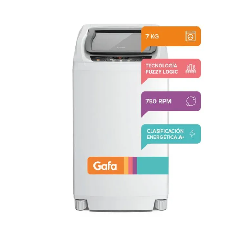 El Lavarropas de Carga superior Gafa FuzzyFit de 7kg, innova en el concepto de cuidado de la ropa. Garantiza un lavado completo e inteligente, gracias a su sistema Fuzzy Logic que selecciona automáticamente la cantidad de agua en función del peso de la ropa en el tambor, optimizando el tiempo de lavado y el consumo de agua.