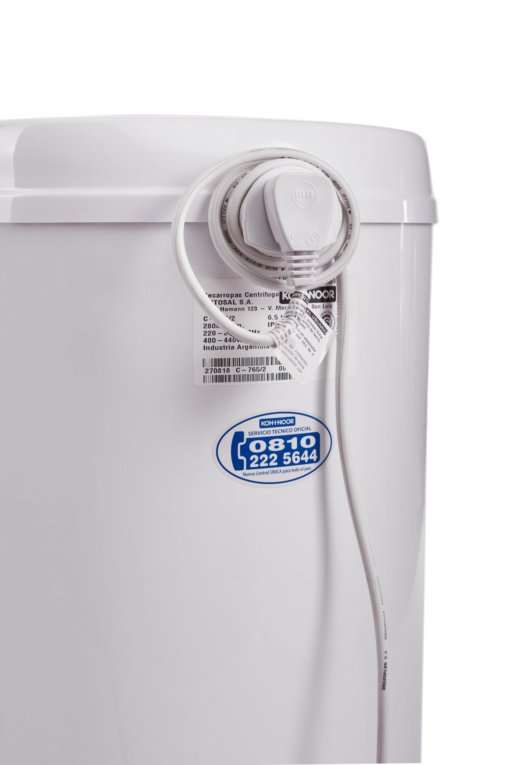 El secarropas centrífugo C-765/2 con tambor de acero y camisa exterior de polipropileno. De 6,5 kg de capacidad y con 2800 RPM (revoluciones por minuto), tiene ¡Más del triple de revoluciones que un lavarropas! *. ¡Con 3 minutos secás la ropa de algodón y ahorrás mucho tiempo de secado! Ocupa muy poco espacio, con un diámetro de 34,3 cm. Incluye recipiente recolector de agua para mayor comodidad y puede usarse con todo tipo de prendas: lana, algodón, toalla, jean, lycra, sintética, polyester, etc.