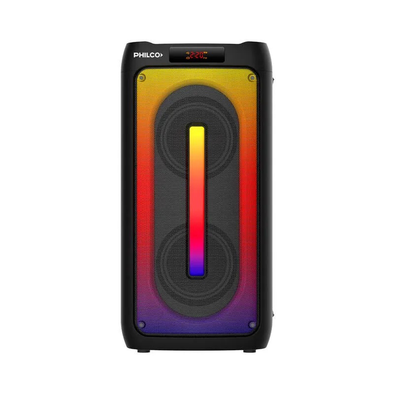 Llevá la fiesta a todas partes con este parlante portátil Philco DJP41 de 800 W de potencia. Incorpora Bluetooth 5.3 para una conexión rápida, luces LED regulables tipo ambiente, función TWS para enlazar otro equipo y batería recargable para horas de música sin cables.